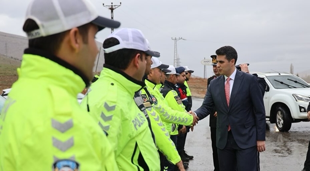 Elbistan Kaymakamı Muhammet Fatih Demirel, Ramazan Bayramı dolayısıyla trafik kontrol noktalarına ziyarette bulunarak görevi başındaki görevlilerinin bayramını kutladı ve başarılar dileğinde bulundu.