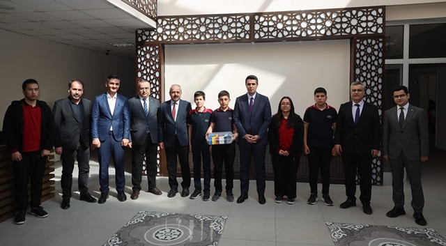 Elbistanlı mucir öğrenciler büyük bir başarıya imza attılar. Elbistan Kaymakamı Muhammet Fatih Demirel, hazırladıkları projelerle Türkiye finallerinde yarışacak başarılı öğrencileri makamında misafir etti.