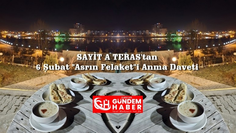 6 Şubat 2023 Depremlerinin merkezi konumunda bulunan Elbistan’da Deprem Şehitleri çeşitli ve kapsamlı etkinliklerle anılırken, Sayit A Teras, depremzede ailelere, yakınlarına ve tüm bölge halkına 6 Şubat 2025 Perşembe günü ücretsiz olarak gün boyu ücretsiz olarak, çorba, sıkma ve çay ikramlarında bulunacak.