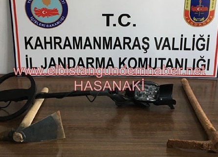 Afşin İlçe Jandarma Komutanlığı ekipleri, Başüstü Mahallesi'nde kaçak kazı yapıldığı ihbarı üzerine harekete geçti. Ekipler, izinsiz kaçak kazı yapan D.Ç, M.Ç, H.Ç ve A.B'yi suçüstü yakaladı.Gözaltına alınan şüphelilere ait detektör, kazma ve çapaya el konuldu.