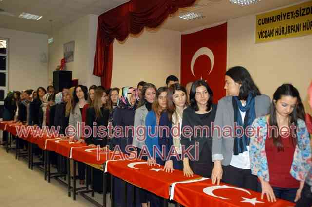 Günün en anlamlı, etkili ve duygulu anı ise genç ve idealist öğretmenlerin ANT okuma töreninde yaşandı. Bay-bayan 48 öğretmen Türk barkları üzerine el koyarak okudukları ANT büyük alkış ve takdir aldı. Öğretmen Andında Türkiye Cumhuriyeti, Atatürk İlke ve İnkılaplarına sahip çıkılma, sadık kalma sözü bir kez daha verildi. Alkışlarla sona eren törenler sonrasında Elbistan İMKB Anadolu Öğretmen Lisesi Müdürü Ali Rıza Doğancan, ilçe protokolüne öğrencilerle birlikte öğle yemeği davetinde bulundu.
