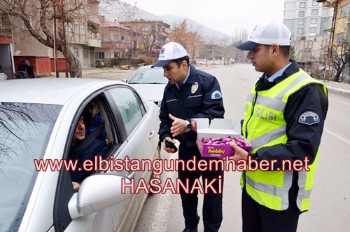 Elbistan Emniyet Müdürlüğü, sempatik ve önemli bir uygulamaya daha imza attı. Elbistan'da yaya güvenliğinin sağlanması amacıyla trafik ekipleri tarafından yaya geçitlerinde uygulama yapılırken, sürücülere çikolata ikram edildi.
