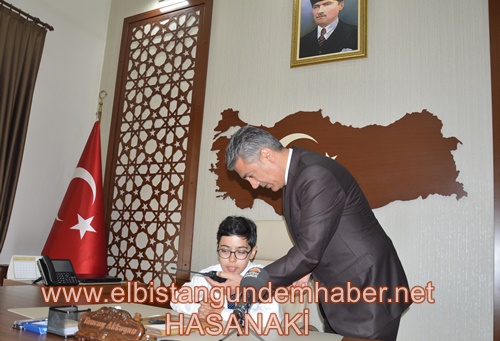 İkinci tören ise, Elbistan Kaymakamlığı’nda düzenlendi. Elbistan Kaymakamı Tuncay Akkoyun, küçük halefi 5.sınıf öğrencisi Mustafa Yusuf Kuşoğlu’na makamını devretti. Temsili olarak kaymakamlık makamına oturan küçük Kaymakam Kuşoğlu, ilçedeki trafik sorununa dikkat çekti. Yayaların ve sürücülerin daha trafikte daha güvenli olmalarını isteyen Kuşoğlu, polis telsizinden çağrı yaptı.