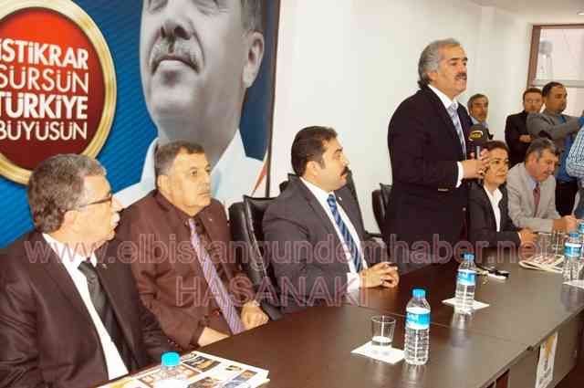 Açılış konuşmasını yapan AK Parti Elbistan İlçe Başkanı Yunus Kaan Kısaca katılımcıların bayramlarını kutlayarak, birlik ve beraberliğin sembolü olan bayram sevinçlerinin daim olması dileğinde bulundu. Daha sonra Belediye Başkanı Av. Durmuş Küçük, oldukça heyecanlı ve etkili bir konuşma yaparak 4.5 yılda Elbistan Belediyesinin sunduğu hizmetleri ve icraatları dile getirdi. Başkan Küçük konuşmasında kapsamlı ve ayrıntılı hizmet bilgileri sunarak şu ifadelere yer verdi: “Yaptığımız şehir içinde ki 300 km. lik sıcak asfalt çalışmalarımızla bugün 14 mahallemizden 13’ü bitmiştir. Allah nasip ederse son bir mahallemiz kalmıştır son olarak ta oraya girip asfaltlama görevimizi bitireceğiz. 100 Km. temiz su şebekesiyle, üzerinde onlara yaklaşan köprülerle birlikte ırmağımızın muhteşem dekorasyon projesiyle, 36 adet parkıyla, otobüsleriyle, otobüs duraklarıyla, billboardlarıyla, cenaze çadırlarıyla, sosyal belediyecilik anlamında 2 bin kişiye yapılan yardımların 20 bin kişiye ulaşılmasıyla. Ramazan ayında bin 500 kişiye yapılan yardımların, 15 binlere taşınmasıyla ve artan nüfusuyla en önemlisi 18 milyon 330 bin TL’den alınan bütçenin 58 milyon TL’ye taşınmasıyla, 26 milyon aldığımız dönem borcunu 6 milyon TL’ye indirmekle sizlerin eseri bir Belediyecilik harikası bugün Elbistan’da gözükmektedir. Anlatacak çok şeyimiz var ama sözlerimi uzatmak istemiyorum zaten sizlerde görüyorsunuz. Allah razı olsun diyorum.”