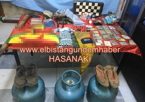Sığınak içerisinde; 1 adet kalaşnikov piyade tüfeği, monte hamili, 33) adet 9 mm fişek ile bir miktar gıda, giyim ve yaşam malzemesi, 50 kg makarna, 50 kg peynir, 25 kg un, 30 kg sıvı yağ, 40 kg tereyağı, 10 kg adaçayı, 10 kg bal, 5 kg tuz, 7 kg salça, l motor yağı, 3 adet tüp, 2 çift spor ayakkabısı, 1 adet soba, 8 adet soba borusu, 1 adet yorgan, 15 adet nüfus cüzdanı, 5 adet sürücü belgesi, 5 adet personel tanıtım kartı, 14 parça mutfak malzemesi, bir miktar doküman ile 3 adet simgesel bez parçası] ele geçirildi.