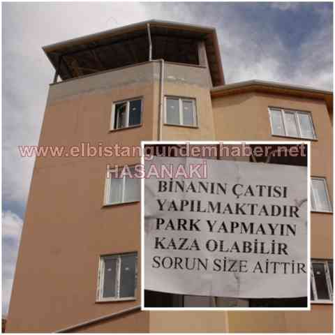 Elbistan gündem Haber objektifleri rutin haber ve haber için çekilen fotoğraflar dışında ilginç görüntüleri ve fotoğrafları okuyucularına sunmaya devam ediyor. Binasının çatısını yaptıran bir vatandaş, binanın altına ve etrafına park yapılmaması için uyarı levhası asarken, yaşanacak olumsuzluklardan ve çatıdan düşebilecek maddelerin araçlara zarar vermemesi konusunda ilginç bir uyarısı yaptı.