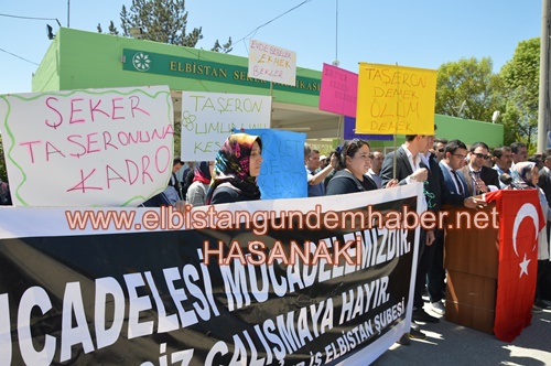 Elbistan Şeker Fabrikasındaki taşeron işçiler kadro beklentilerini gerçekleştirdikleri eylemle dile getirdiler. İşçilerin taşıdıkları, “Taşeron Demek Ölüm Demek”, “Şeker Taşeronuna Kadro”, “Evde Bebeler Ekmek Bekler”, “Taşeron Umudunu Kesmedi”, “Şirket Değil Kadro İstiyoruz” ve “Ekmek Elden Alınamaz” pankartlar dikkat çekti.