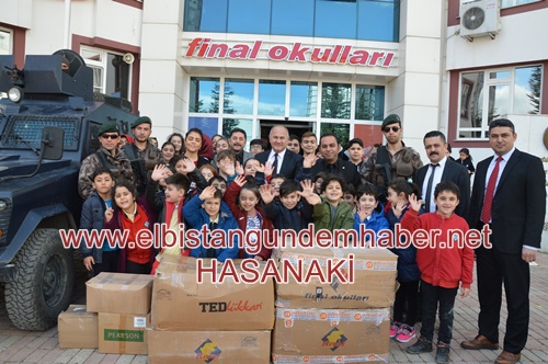 Başarılı eğitim öğretiminin yanı sıra yaşam ve sosyal sorumluluk projelerini periyodik aralıklarla hayata geçiren Elbistan FİNAL Okulları, anlamlı ve örnek bir çalışmaya daha imza attı. Kurum bünyesinde bulunan okullarda eğitim gören öğrencilerin başlattığı kampanya sonucunda harçlıklar ve velilerin katkıları ile hazırlanan koliler Elbistan Emniyet Müdürü Hakan Aşık ve Özel Hareket Yetkililerine teslim edildi.