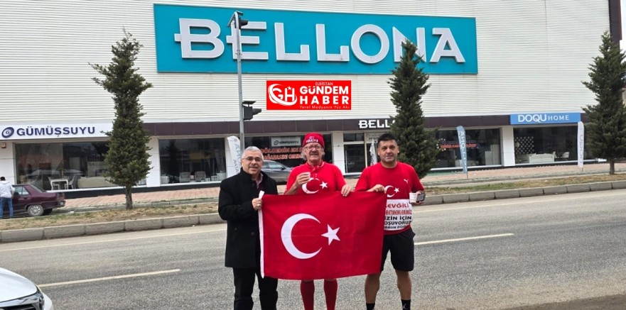 Elbistan’da 60 yılı aşkın başarılı ve güvene dayalı işletmecilik yapan Çağlayan Mobilya Sahibi Hilmi Gökduman, Maraton Koşucuları Sıtkı Gönen ve Ferruh Doğan’a günün anlam ve önemine yakışan güzellikte bir jest yaparak Türk Bayrağı ve sıcak çay ikramında bulundu.