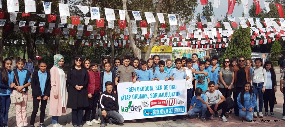 Elbistan Milli Eğitim Müdürlüğü Büyük Yapalak Gazi Ortaokulu ve Gazi İlkokulu öğretmenleri ve öğrencileri, KADEP’in Ekim ayının değeri olan ‘Ben Okudum Sende Oku’ etkinliği çerçevesinde Kahramanmaraş’ta Büyükşehir Belediyesi tarafından düzenlenen kitap fuarına katıldı.