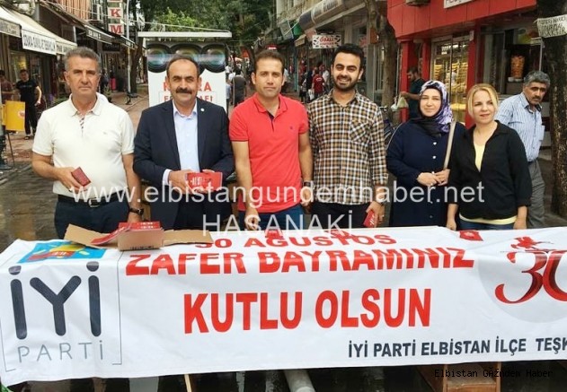 İYİ Parti Elbistan İlçe Başkanlığı, 30 Ağustos Zafer Bayramı’nı, farklı ve ilginç bir organizasyonla kutladı. İYİ Parti Elbistan ilçe Başkanı Yemliha Özcan, tarihimize altın harflerle yazılan 30 Ağustos Zaferi’nin 97.yıldönümü dolayısıyla hazırladıkları, afişleri şehrin farklı yerlerine astıklarını; günün anlam ve önemini özetleyen broşürleri de şehir merkezinde vatandaşlara dağıttıklarını söyledi.