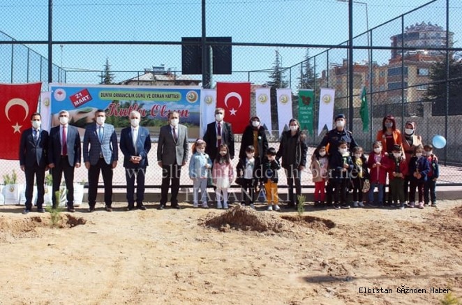 Anlamlı organizeye; Elbistan Kaymakamı Özkan Demir, İlçe Jandarma Komutanı Binbaşı Sinan Sert, İlçe Emniyet Müdürü İhsan Kıvrak, İlçe Milli Eğitim Müdürü Kürşat Bayazıt, Elbistan Orman İşletme Şefi Sultan Demir, milli eğitim şube müdürleri, okul müdürleri, öğretmenler ve öğrenciler katıldı. Kaymakam Demir, protokol üyeleri ve minik öğrencilerle birlikte okul bahçesinde fidan dikti.