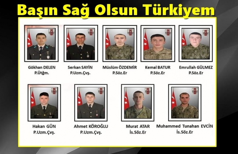 Bölgede operasyonlar devam etmektedir. Bizleri derin bir acı ve üzüntüye boğan bu olayda hayatını kaybeden aziz şehidimize Allah'tan rahmet, kederli ailelerine, Türk Silahlı Kuvvetleri ile asil milletimize başsağlığı ve sabır dileriz."