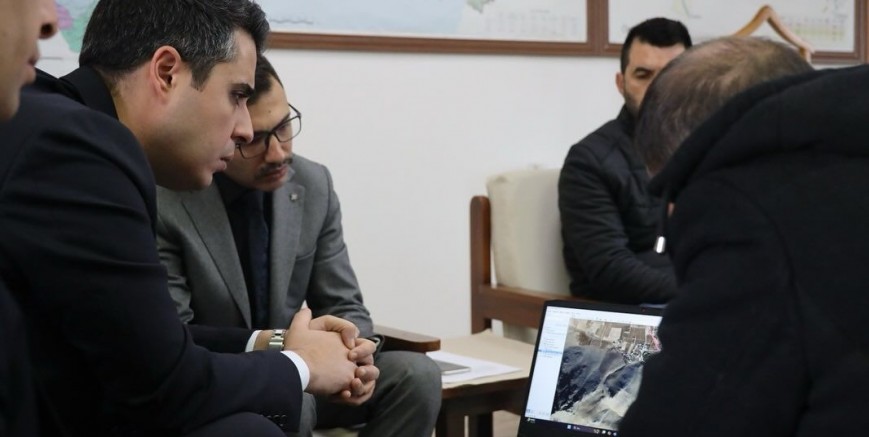 Elbistan Kaymakamı Muhammet Fatih Demirel, deprem konutlarının bulunduğu 2 mahallede ulaşımı rahatlatacak alternatif güzergâhlar ve bağlantı yolları projesiyle ilgili yetkililerden brifing aldı.