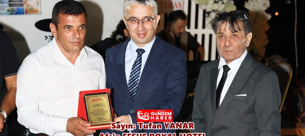 BÖLGENİN EN BÜYÜK, RAHAT, KONFORLU VE MODERN 200 YATAK KAPASİTELİ EFSUS ROYAL OTELİ BÖLGEYE TURİZM YATIRIMI OLARAK KAZANDIRDI. YATIRIMINI BAŞKA YERLERE DEĞİL MEMLEKETİ AFŞİN’E GERÇEKLEŞTİREN BU MÜKEMMEL KONAKLAMA ADRESİ OLAN EFSUS ROYAL OTEL İŞLETME SAHİBİ, BAŞARILI İŞ İNSANI TUFAN YANAR’A “BÖLGESEL DEĞER VE ÖRNEK TURİZM YATIRIM ÖDÜLÜNÜ” GURUR VE MUTLULUKLA TAKDİM ETTİK.