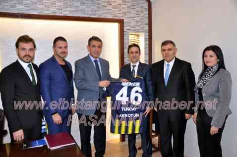 Elbistan Kaymakamı Tuncay Akkoyun’u makamında ziyaret eden Fenerbahçeliler Derneği Kurucu Başkanı Rıdvan Perktaş, Yönetim Kurulu Üyeleri Fidan Aksu, Seyit Özkanlı, Recep Çevik, Av. İhsan Kılıç, Muharrem Dedeler ve Kuddisi Tasalı Kahramanmaraş’ın plakası olan 46 sırt numaralı, futbolcuların imzasının bulunduğu orijinal Fenerbahçe forması hediye ettiler.