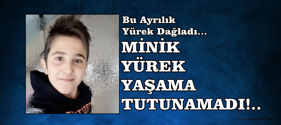 Acı ve yürekleri yakan olay Elbistan’da yaşandı. Elbistan Ortaokulu 2. sınıf öğrencisi 11 yaşındaki Hüseyin Pak, gece saatlerinde aniden rahatsızlandı. Anne Asiye Pak ve Baba Kadir Pak, büyük bir telaş ve endişe içinde nefes alamadığını fark ettikleri oğlunu Elbistan Devlet Hastanesi Acil Servise yetiştirdiler.