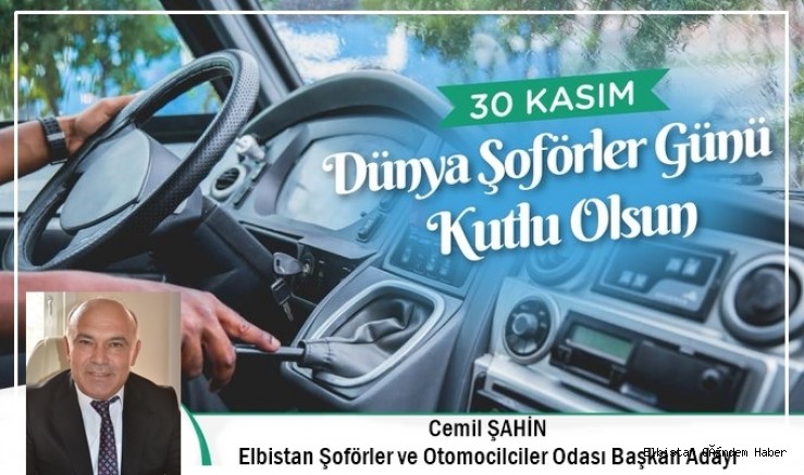 Şoförlerin gece gündüz demeden her türlü zorlu koşullarda halka hizmet sunduğunu kaydeden Elbistan Şoförler ve Otomobilciler Odası Başkan Adayı Cemil Şahin, 30 Kasım Dünya Şoförler Günü dolayısıyla yayınladığı mesajında duygu ve düşüncelerini şu sözlerle ifade etti: