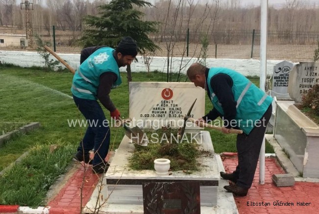 Elbistan Belediyesi merkez ve kırsal mahallelerde bulunan Şehitlik kabirlerinde bakım ve onarım çalışmalarına başladı.