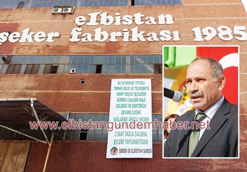 Şeker-İş Şube Başkanı Şahin, Türkiye genelinde 25 şeker fabrikasında başlatılan bir ay süresince günde 2 saat ücretsiz fazla çalışma eylemine Elbistan Şeker Fabrikası olarak destek verdiklerini ve işçiden yana olduklarını kaydetti.