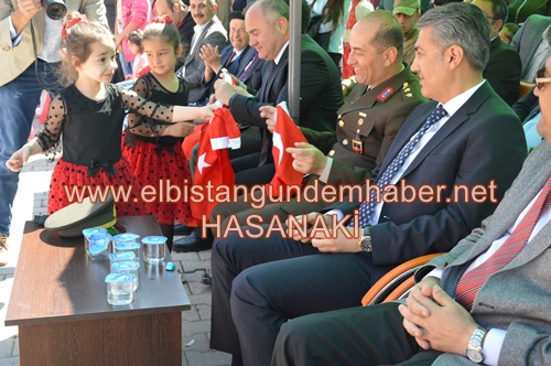 Okul bahçesindeki gösteriler, birbirinden renkli görüntülere sahne oldu. Aileler, gösterilerde yer alan çocuklarını görüntülemek için büyük çaba harcarken, öğrenciler, ellerindeki Türk bayraklarını Elbistan Kaymakamı Tuncay Akkoyun ve protokol üyelerine hediye etti. Kaymakam Akkoyun, İlçe Jandarma Komutanı Yüzbaşı Sinan Sert, Emniyet Müdürü Hakan Aşık ve protokol üyeleri, program sonunda öğrencilerle hatıra fotoğrafı çektirerek bayramlarını kutladı.