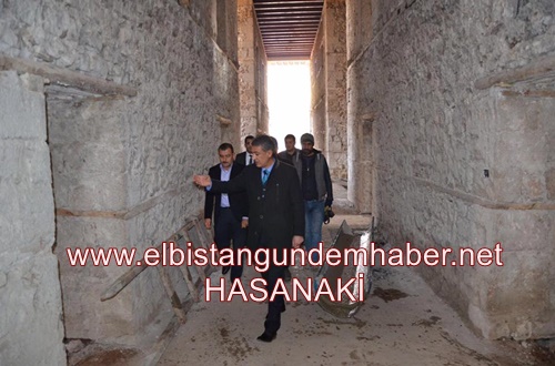 100 yıllık ve yaşı Cumhuriyetin kurulma dönemine rastlayan tarihi binada alışmaları yerinde inceleyen Elbistan Kaymakamı Tuncay Akkoyun, projenin yüklenici firma yetkililerinden ve proje sorumlularından bilgiler aldı.
