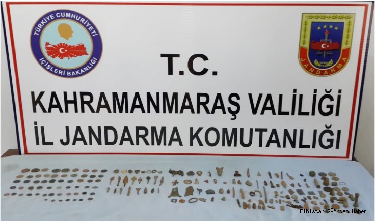 Yapılan kapsamlı ortak istihbarı çalışmaları başarıyla tamamlayan Jandarma ekipleri, Afşin Karagöz’de Afşin nüfusuna kayıtlı Y. K.’nin kullandığı özel otomobilde Roma Dönemine ait 58 adet sikke, 8 adet yüzük, 14 adet ok ucu, 1 adet haç kolye, 1 adet boğa heykeli ve 117 adet çeşitli tarihi obje ele geçirdi.
