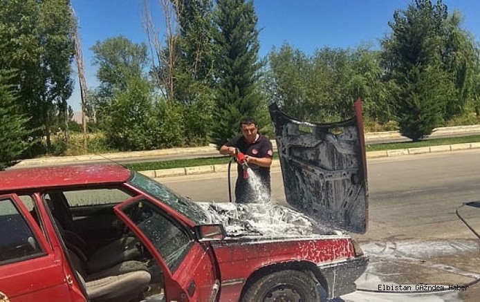 Elbistan’da Köprübaşı Mahallesi’nde bir otomobilin seyir halindeyken motor kısmında yangın çıktı. Yolculuk sırasında çıkan yangını daha fazla büyümeden itfaiye ekipleri söndürdü.
