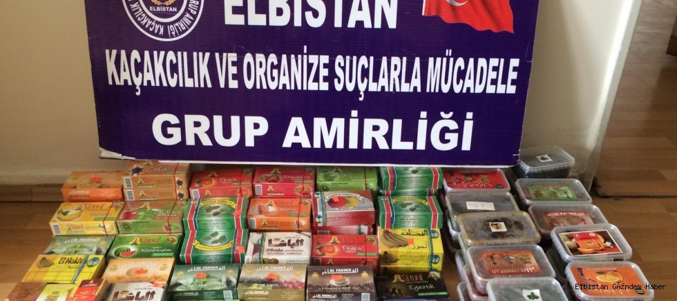 Elbistan İlçe Emniyet Müdürlüğü Kaçakçılık ve Organize Suçlarla Mücadele (KOM) Grup Amirliği ekiplerinin düzenlediği operasyonda kaçak tütün, nargile tütünü ve cinsel gücü artırıcı hap ele geçirildi.