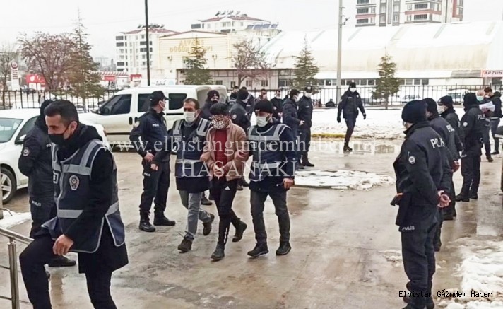 Hâkim karşısına çıkarılan şüpheliler, K.P.(30), A.F. (28), M.Y. (28), İ.D. (21), S.P. (22), Ö.G. (34) ve B.K. (37) tutuklandı. Tutuklanan şüpheliler, Elbistan E Tipi Kapalı Ceza İnfaz Kurumu’na gönderildi.