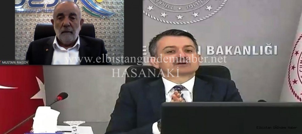 Video konferans toplantıda söz alan Elbistan Ticaret ve Sanayi Odası Yönetim Kurulu Başkanı Mustafa Paksoy, ilçedeki tarımsal alanların sulanması yönündeki talepleri dile getirdi.