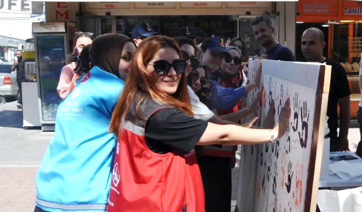 Elbistan Sosyal Hizmet Merkezi Müdürlüğü’nce düzenlenen etkinlikte kadına şiddete dikkat çekmek ve farkındalık oluşturmak için ‘El İzi’ bırakıldı.
