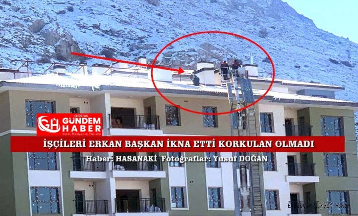 6 katlı binanın çatısına itfaiye merdiveni ulaşanların ikna çabaları karşılık görmezken, ikna çabaları saatlerde sürdü. İşçiler yetkililerin gelmesini, hak ettikleri paralarının verilmesini istediler. Gergin ve korku içinde geçen saatler sonunda olay yerine gelen Elbistan Belediye Başkanı Erkan Gürbüz, çatıya çıkarak işçilerle diyaloga girdi. Erkan Başkan dakikalar süren konuşmasının ardından işçilerin alacakları çaba sarf edeceklerini söyledi. Etkili ve ikna edici konuşmanın ardından 4 işçi çatıdan indirildi.