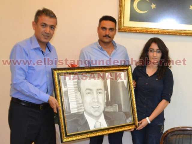 Elbistan Gençlik Merkezi bünyesinde açılan resim kursu neticesinde konservatuarı kazan öğrenciler Kaymakam Akkoyun’u makamında ziyaret ettiler. Ziyaretin sürprizi ise öğrencilerden Güldemet Özdemir’in kara kalem resim çalışması olarak yaptığı Tuncay Akkoyun Portresini, Kaymakama hediye etmesi oldu.