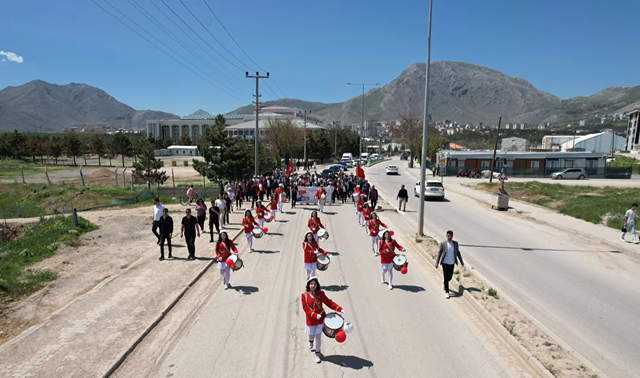 Dulkadiroğlu Anadolu Lisesi bando takımı eşliğinde yapılan gençlik yürüyüşü, bu yıl ki 19 Mayıs kutlamalarına renk kattı.
