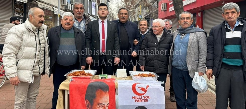 Milli Yol Partisi (MYP) Elbistan Belediye Başkan Adayı Ali Alagöz ve Elbistan İlçe Teşkilatı tarafından vatandaşlara 6 Şubat depreminin yıl dönümü dolayısıyla tatlı ikramında bulunuldu.
